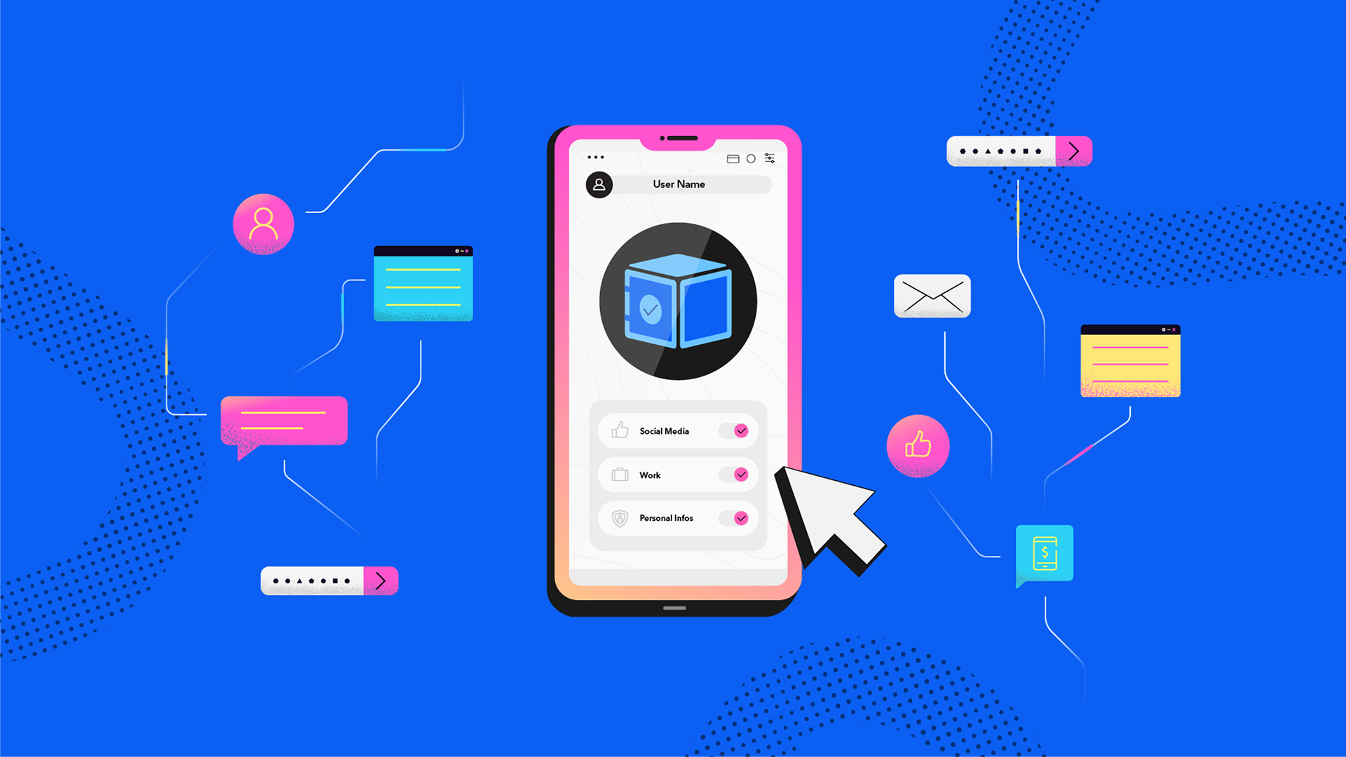 Box Safe is a fictional brand for a data security application, which stands out for having the ability to combine multiple passwords and information from different places on the internet in one place protected by a master password. The idea of this explainer was to show some of the app's functionalities and your advantages.
